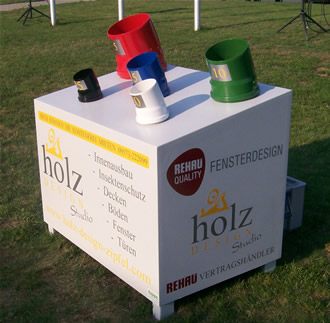 Bei strahlendem Sonnenschein boten sich den Besuchern allerlei Attraktionen für jede Altersklasse, so konnten sich die Kleinen auf der Hüpfburg und beim Torwandschießen unter Beweis stellen oder am Kinderschminken teilnehmen. Das „Schreinerrätsel“ fand ebenso regen Zuspruch – so bat die Suche nach den überall in den Werkshallen versteckten Antworthinweisen nicht nur die Möglichkeit, einmal hinter die Kulissen der Firma Holz Design – Hüls Fenster zu blicken, es gab auch tolle Preise zu gewinnen, von T-Shirts bis hin zu MP3-Playern und Fliegengittern.